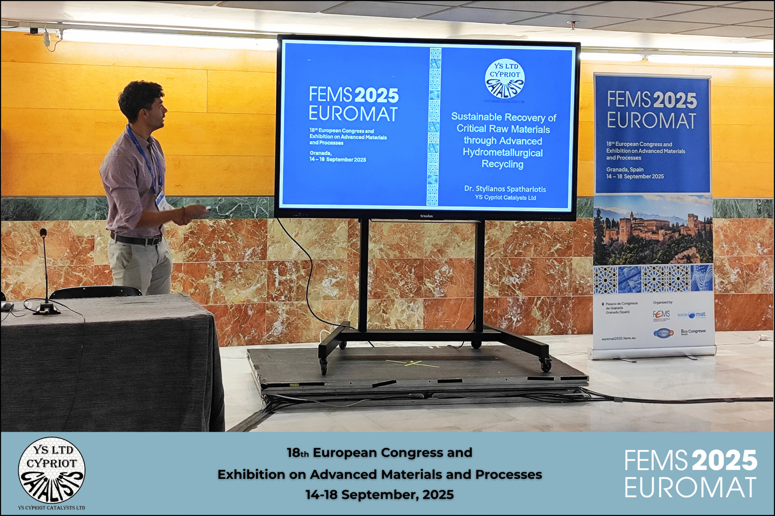 YS Cypriot Catalysts Ltd. 𝗽𝗿𝗼𝘂𝗱𝗹𝘆 𝗽𝗮𝗿𝘁𝗶𝗰𝗶𝗽𝗮𝘁𝗲𝗱 at 𝗙𝗘𝗠𝗦 𝗘𝗨𝗥𝗢𝗠𝗔𝗧 𝟮𝟬𝟮𝟱 — one of Europe’s 𝗹𝗲𝗮𝗱𝗶𝗻𝗴 𝗰𝗼𝗻𝗳𝗲𝗿𝗲𝗻𝗰𝗲𝘀 𝗼𝗻 𝗺𝗮𝘁𝗲𝗿𝗶𝗮𝗹𝘀 𝘀𝗰𝗶𝗲𝗻𝗰𝗲 𝗮𝗻𝗱 𝗶𝗻𝗻𝗼𝘃𝗮𝘁𝗶𝗼𝗻, that took place in Granada, Spain on 14–18 September.